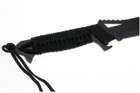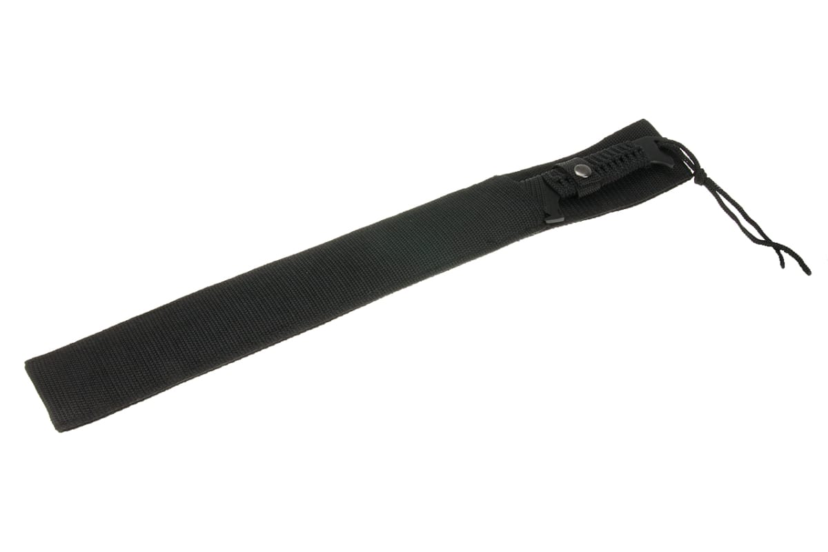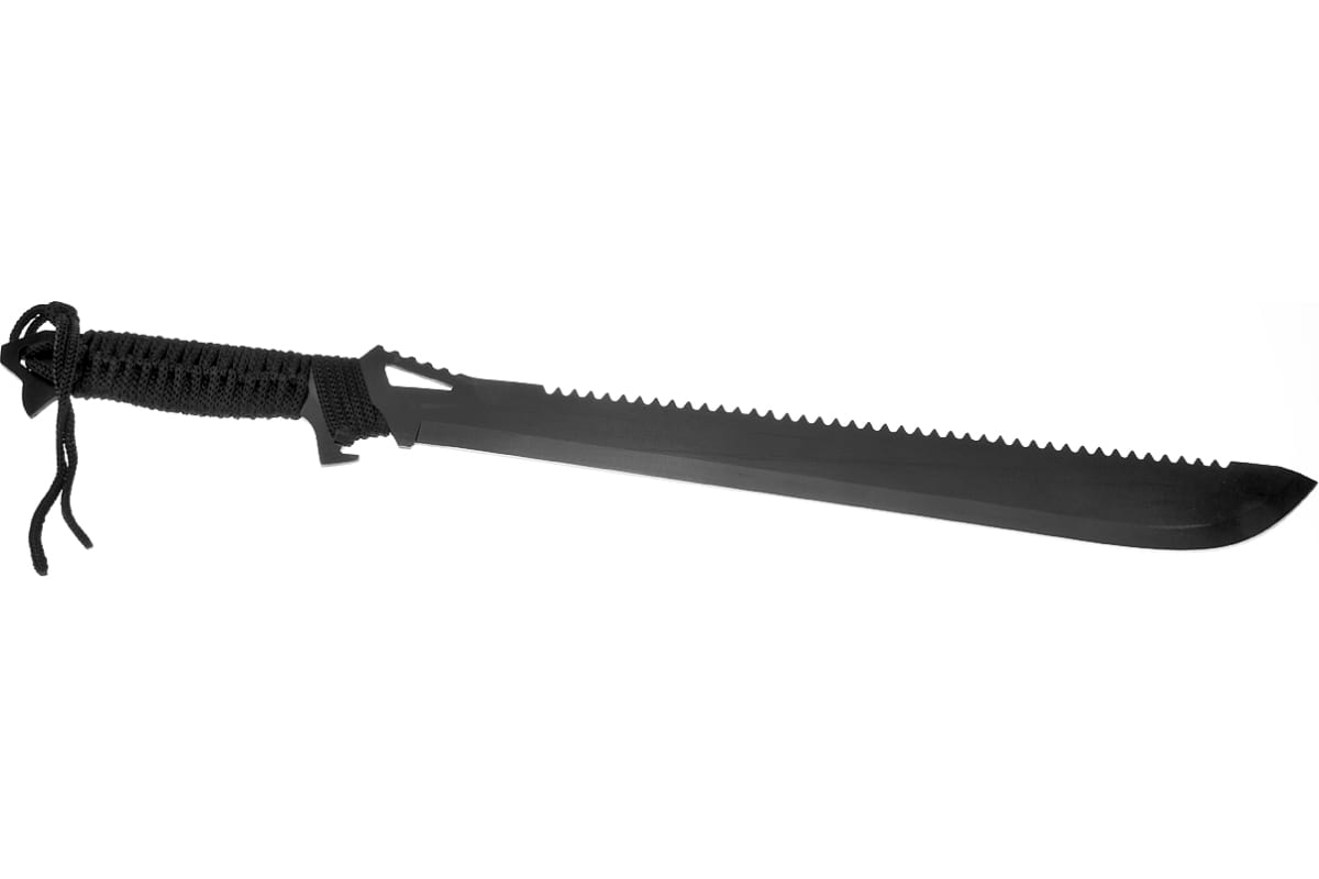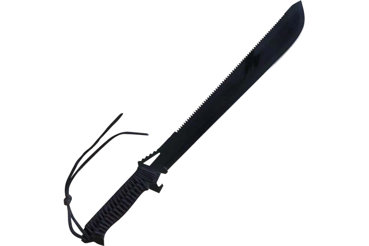 Кроме того, в комплекте с мачете-пилой поставляются ножны, которые обеспечивают безопасный транспорт и хранение инструмента. Рукоять мачете-пилы обтянута капроновым шнуром, что обеспечивает удобный и прочный захват.