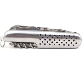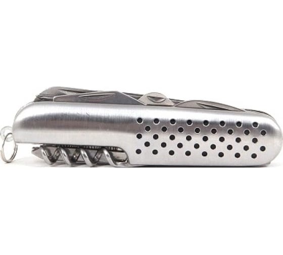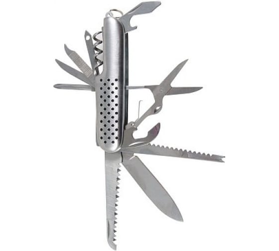Может использоваться в качестве ножа для рыбы и консервов, пилы, ножниц, шила, открывалки для бутылок, отвертки, штопора и для других целей.