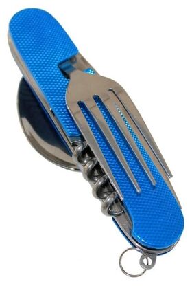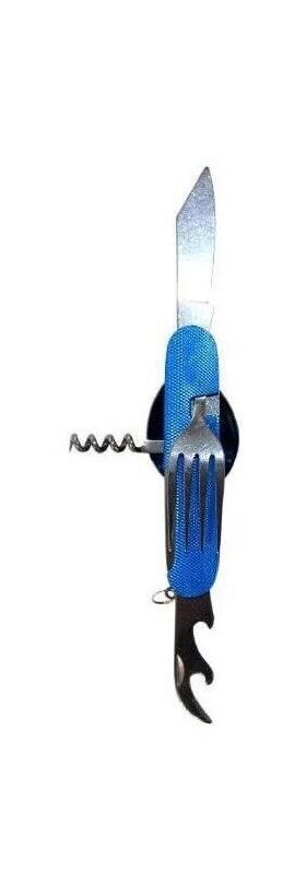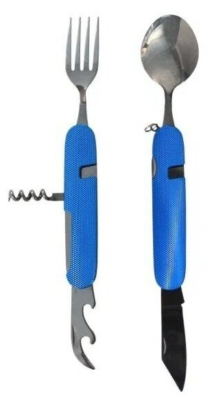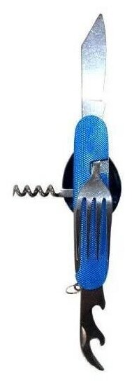 включает в себя ложку, вилку, нож, штопор, открывашку и шило, которые удобно и компактно