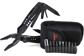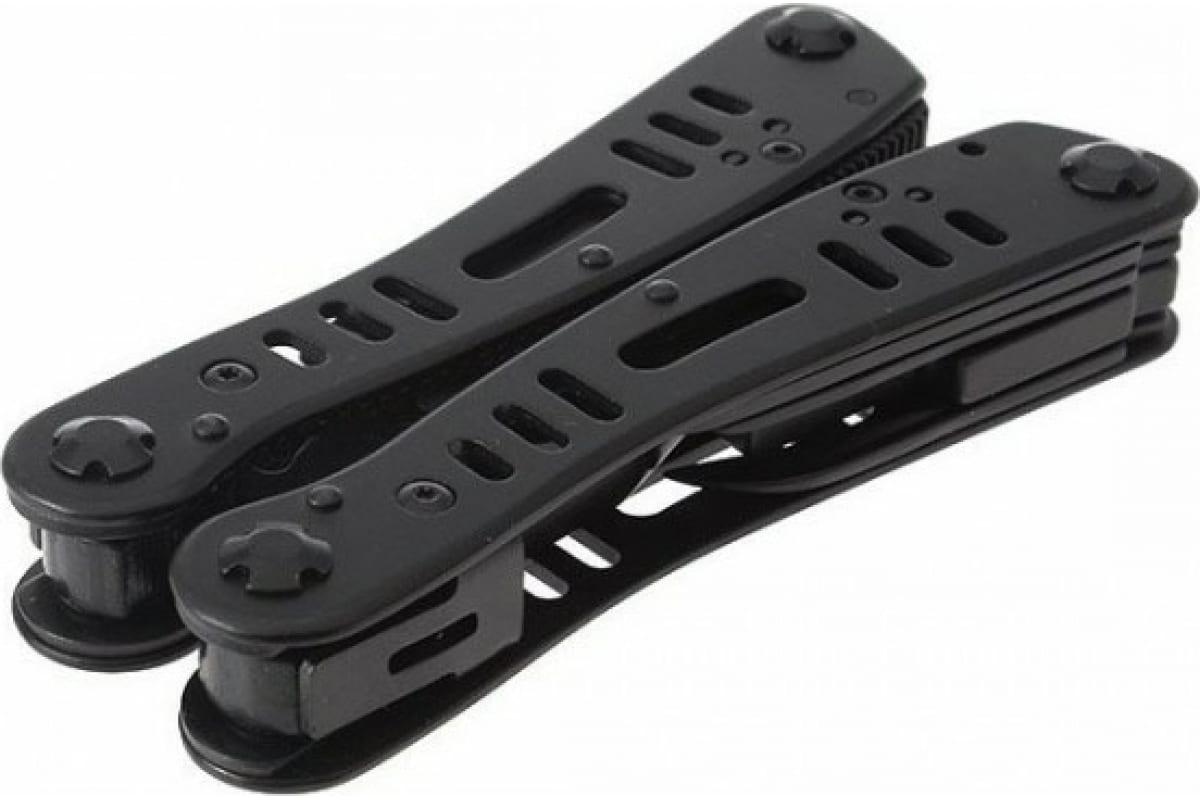 Одно из основных преимуществ такого мультитула — наличие полноценных плоскогубцев с мощными подпружиненными губками, встроенными кусачками для проволоки и ребристым захватом для предметов круглой формы. Помимо того, в пустых изнутри рукоятках мультитула размещаются открывалка для бутылок, две плоские и крестовидная отвертки, шило (его же можно использовать в качестве маленького ножа), линейка, на обратной стороне которой — напильник, два клинка (гладкий и с серрейторной заточкой). Также имеется держатель для бит с квадратным сечением. Сами же биты прилагаются в отдельном органайзере: 8 сменных насадок и переходник.