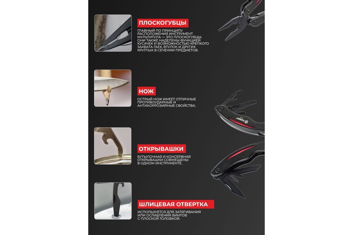 - в комплекте плоскогубцы и 8 дополнительных инструментов