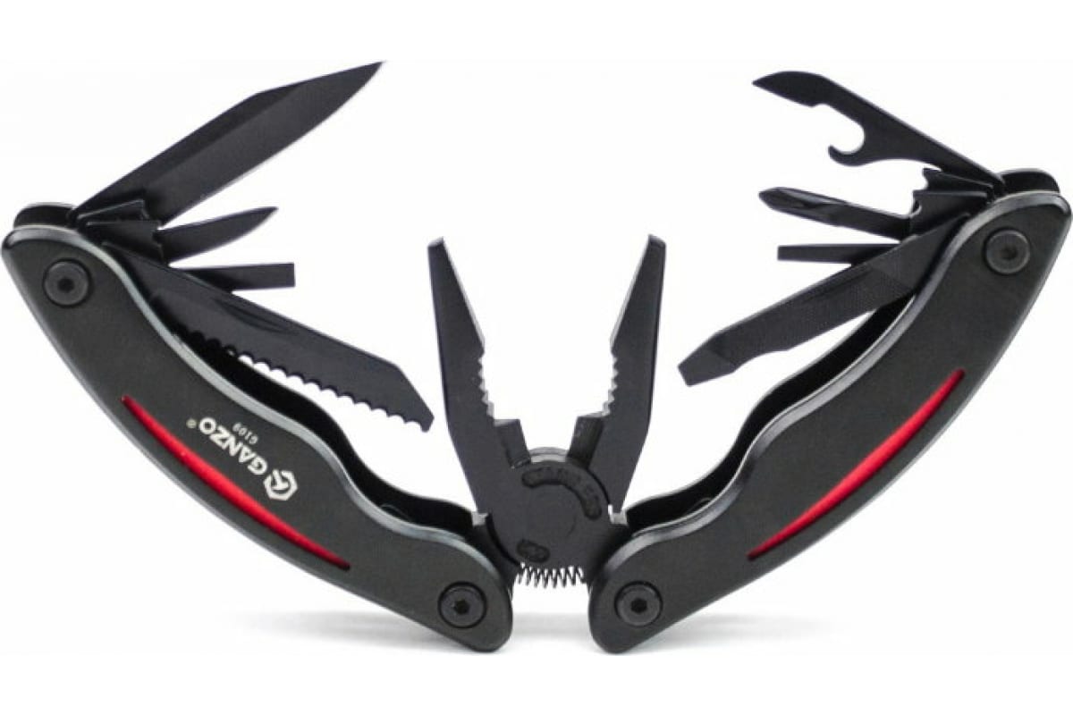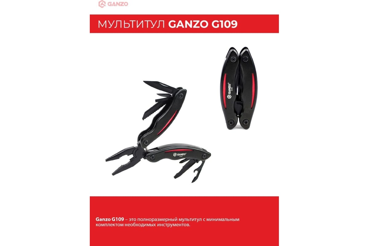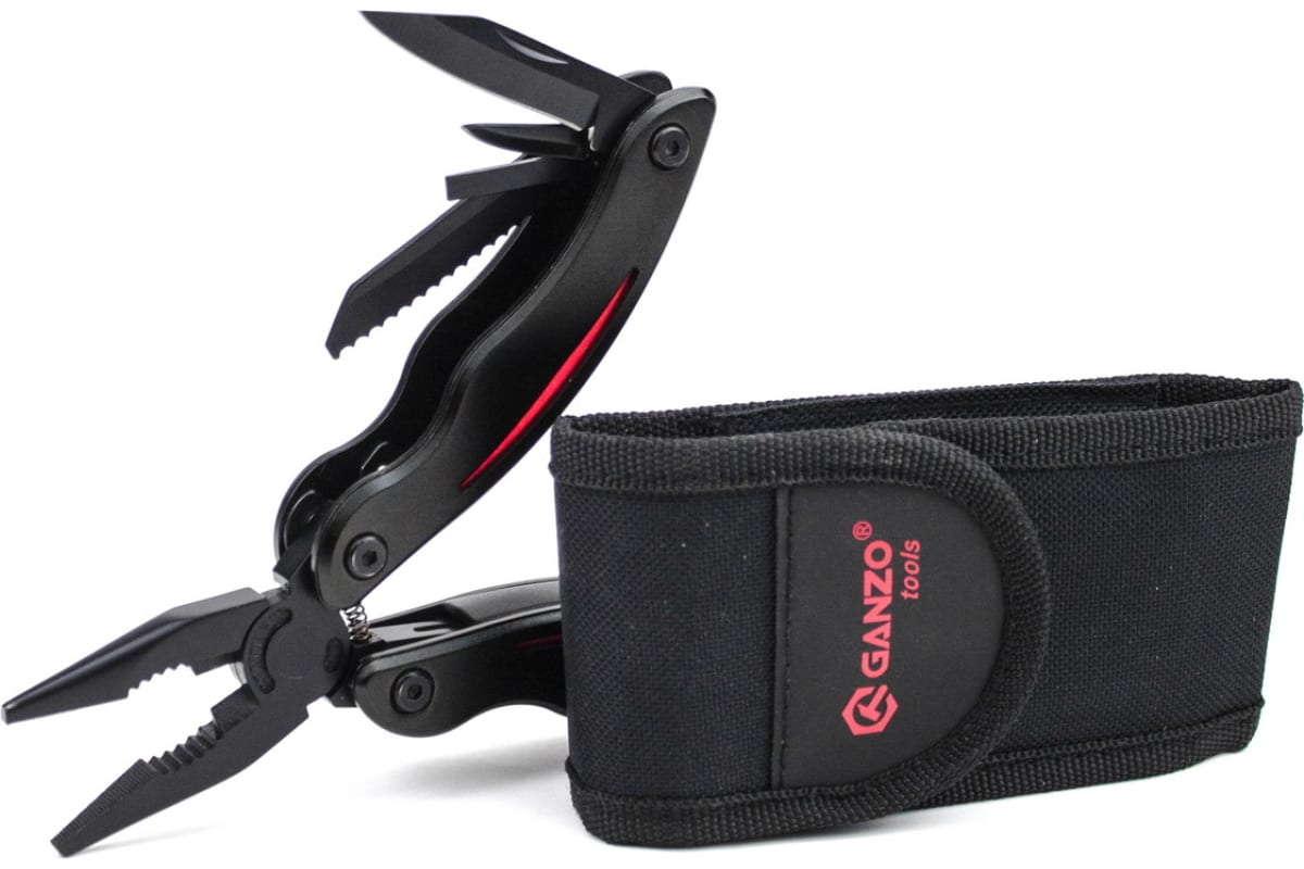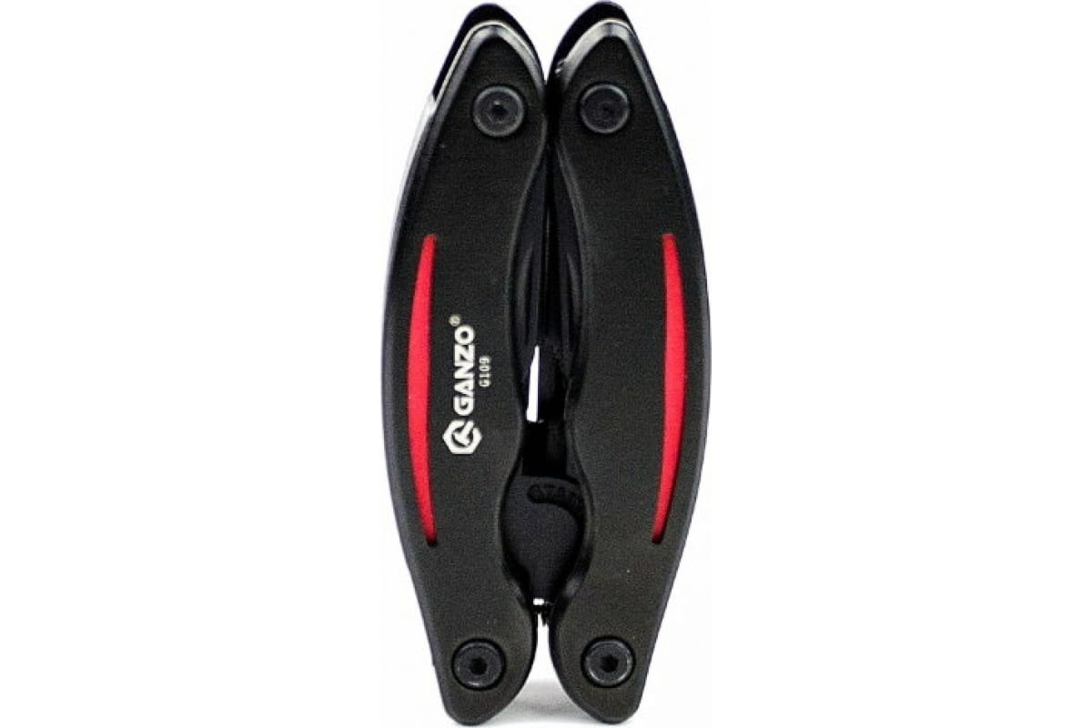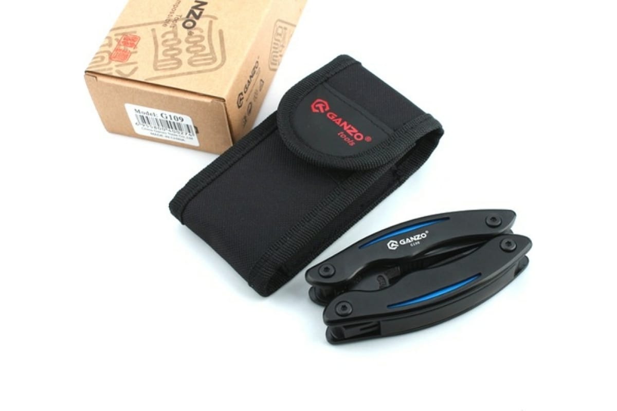 Модель мультитула Ganzo G109 доступна в двух вариантах дизайна: с синими и красными вставками на ручках. На остальные детали инструмента нанесено вороненое покрытие, которое придает ему особый стиль. В открытом состоянии ручки плоскогубцев выгнуты наружу, а потому мультитул не выскальзывает из рук во время работы. Губки плоскогубцев подпружинены, чтобы без нагрузок оставаться в открытом состоянии.