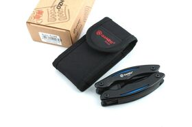 Дополнительно в комплект инструментов входит еще 8 наименований: ножи с прямой и серрейторной заточкой, открывалка для бутылок, шило, средняя, маленькая плоская, длинная и крестообразная отвертки. Также в коробку с мультитулом вложен компактный и удобный чехол на кнопке.