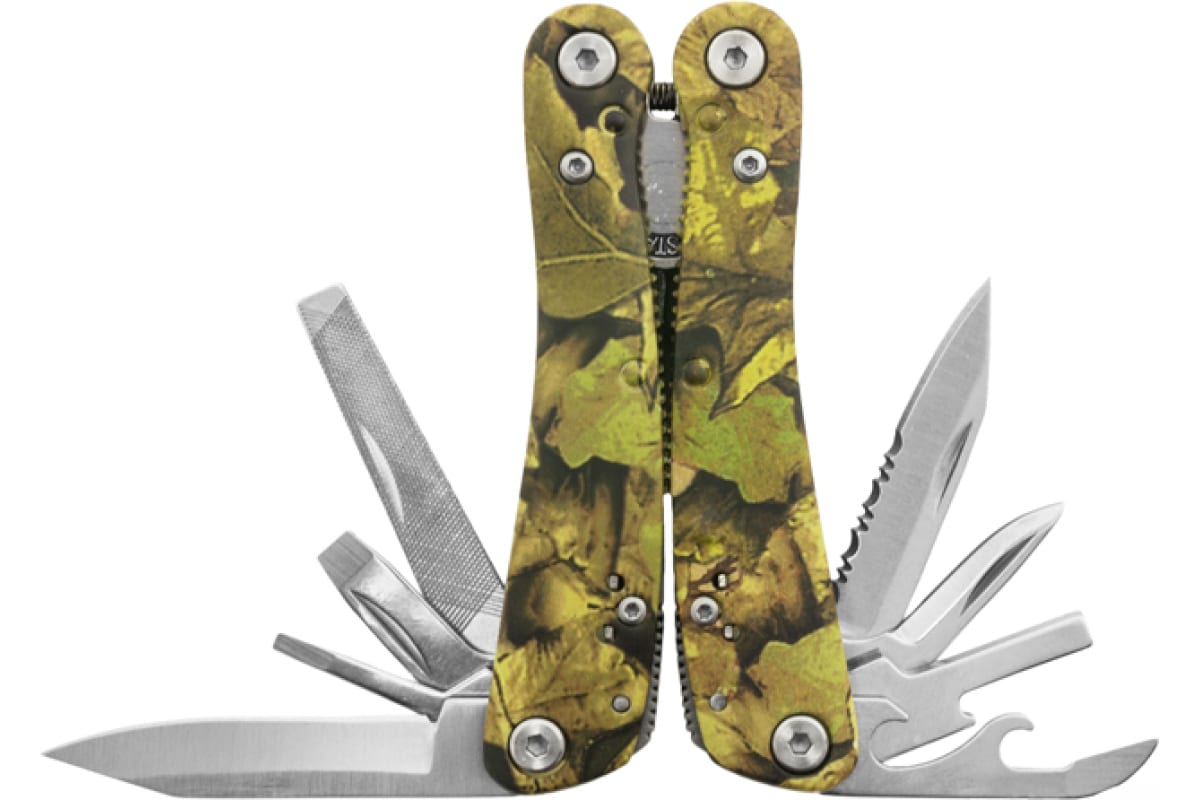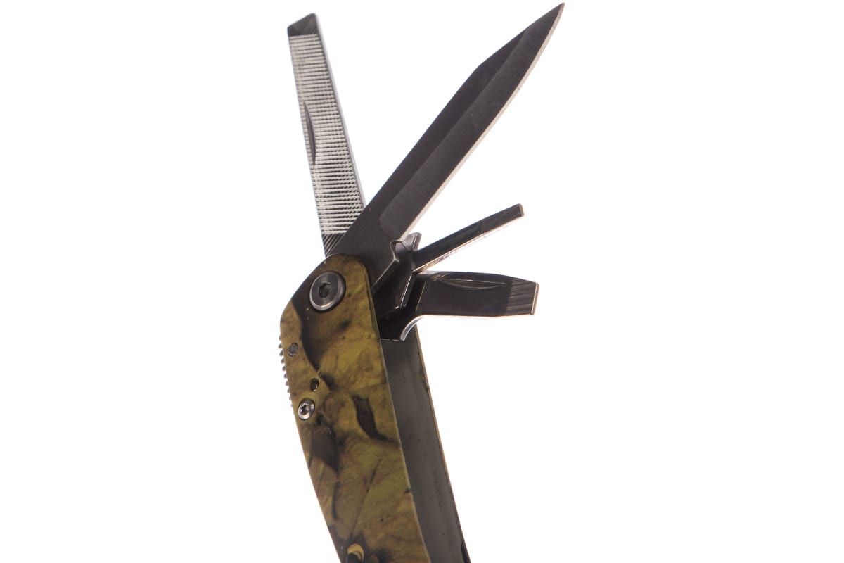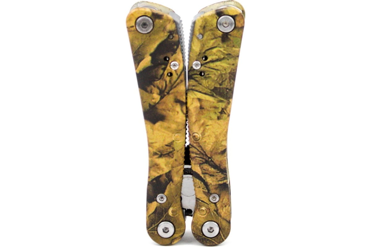 На ручках мультитула G2016-P закреплены пластиковые накладки, имеющие камуфлирующую окраску. В комплекте инструментов находятся: подпружиненные плоскогубцы с кусачками, два лезвия, одно из которых имеет серрейторную заточку, две шлицевых отвертки разного размера, напильник, линейка, удлинитель адаптера для бит, нож для консервов и открывалка для бутылок.
