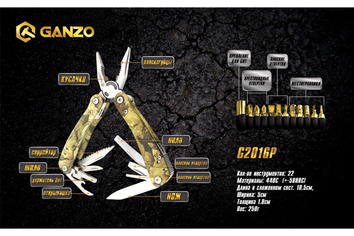 Прекрасный мультитул G2016-P от компании Ganzo. Дизайн модели рассчитан на охотников, рыболовов и любителей вещей в стиле «милитари».