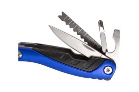 Длинногубцы, Захват для удерживания полукруглых предметов, Кусачки, Нож, Две открывалки, Крестовая отвертка, Приспособление для чистки рыбы, Приспособление для удаления крючка, Линейка, Пилка для ногтей двусторонняя, Пила, Три плоские отвертки