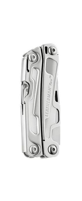 Описание Мультитул REV из нержавеющей стали : Нож 420НС,острогубцы,пассатижи,кусачки для проводов,нож для вскрытия упаковки,линейка 3,8см=1,5 дюйма,консервный нож,открывалка для бутылок,напильник по дереву/металлу,отвертка Phillips,средняя отвертка,маленькая отвертка, съемная карманная клипса
