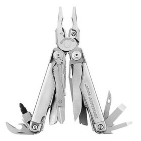 Описание Нож прямой, нож серрейторный (ножи открываются одной рукой), ножницы, съемный напильник по дереву и металлу с алмазным напылением, съемная пила (напильник и пила имеют стандартное крепление в держателе, совместимое с держателем в электролобзиков марки Bosсh, что позволяет использовать в мультитуле