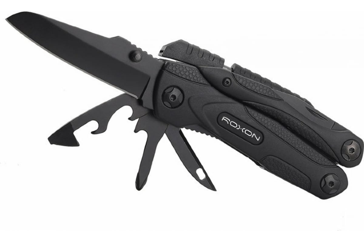 Мультиинструмент Roxon SPARK CM1349 получил все необходимые функции, чтобы стать ценным помощником для туриста, охотника, рыбака и любителя экстремального отдыха или спорта на природе. В нем равнозначные роли отведены складному ножу и плоскогубцам. Как и у классического мультитула, плоскогубцы Roxon SPARK CM1349 прячутся внутри двух пустых рукояток. Они достаточно большие и мощные, чтобы справиться с очень твердыми материалами. Твердость стали самих плоскогубцев достигает 55 HRC. Этот инструмент дополнен острыми кусачками и захватом для гаек и других круглых предметов.