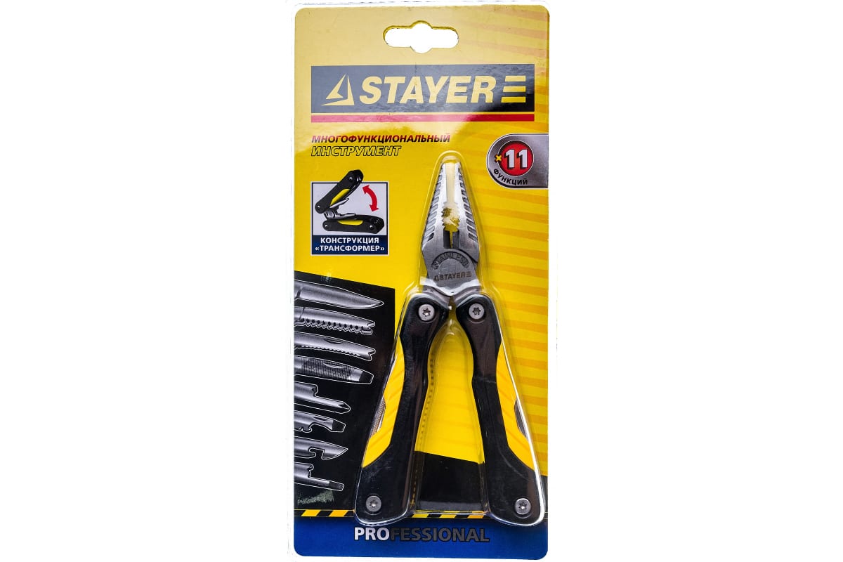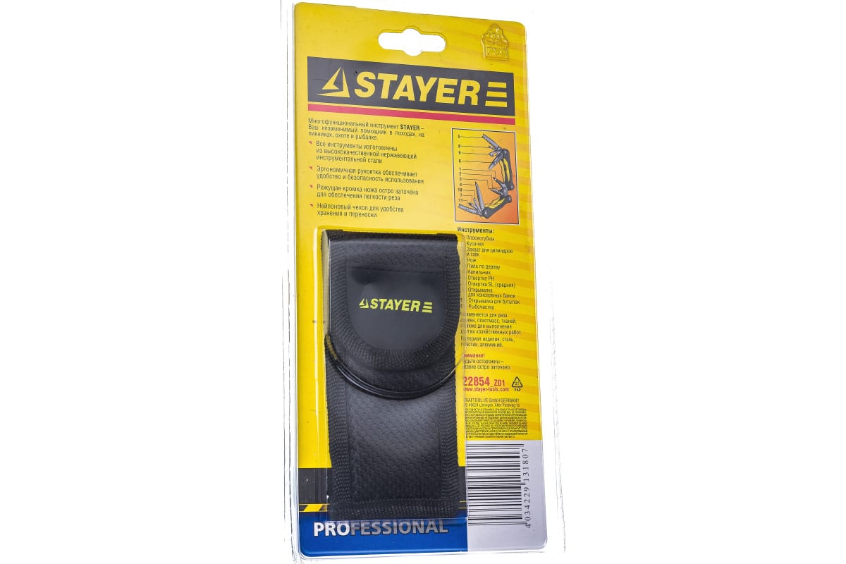 Многофункциональный инструмент STAYER 11 в 1 22854_z01 подходит для выполнения различных операций в хозяйстве для монтажа или ремонта небольших конструкций, а также во время отдыха на природе: рыбалке, охоте и пр. Изделие обладает повышенным рабочим ресурсом благодаря материалу рабочих частей - инструментальной нержавеющей стали.