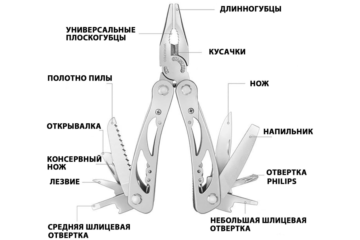 В мультитул входят следующие инструменты: