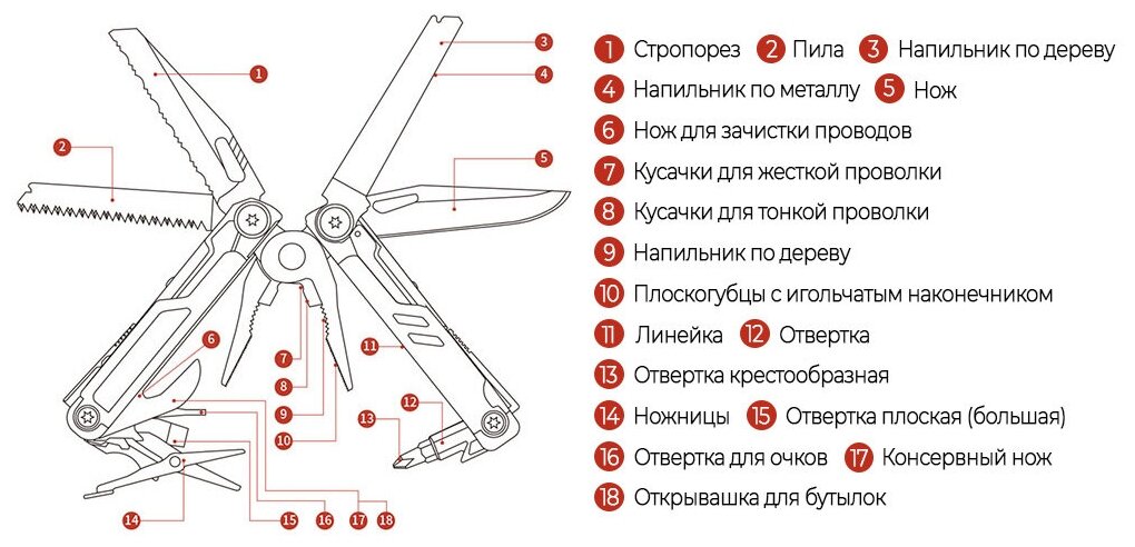 Главная/Товары для дома/Туризм/Ножи и мультитулы/Мультитул Xiaomi (Mi) HuoHou Multi-Tools Pro HU0191 Rus, 18 инструментов, прочность до HRC58, высокоточное изготовление и улучшенная полировка