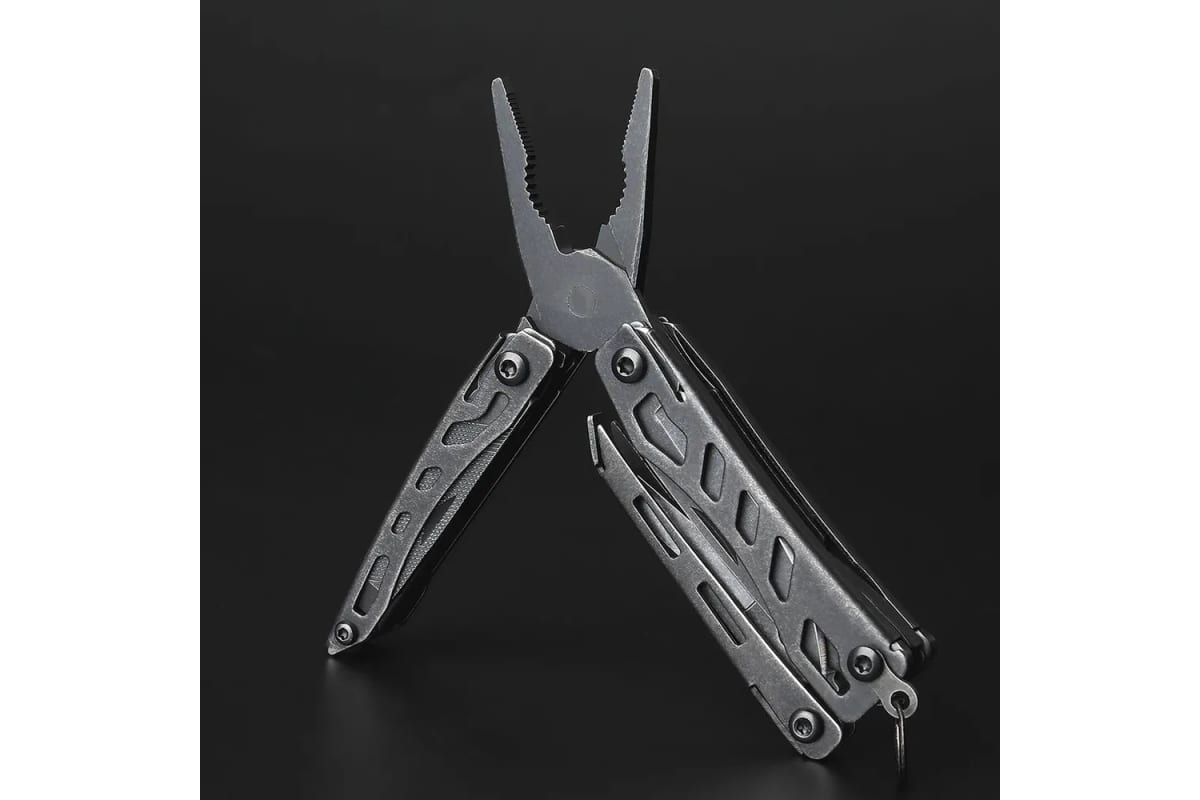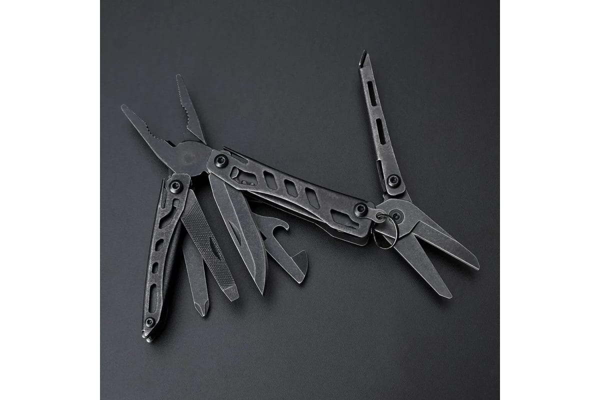 Инструменты: Нож прямой, Пила, Плоскогубцы, Отвертка крестовая, Отвертка плоская, Открывалка для бутылок, Открывалка для консервов, Ножницы