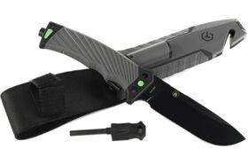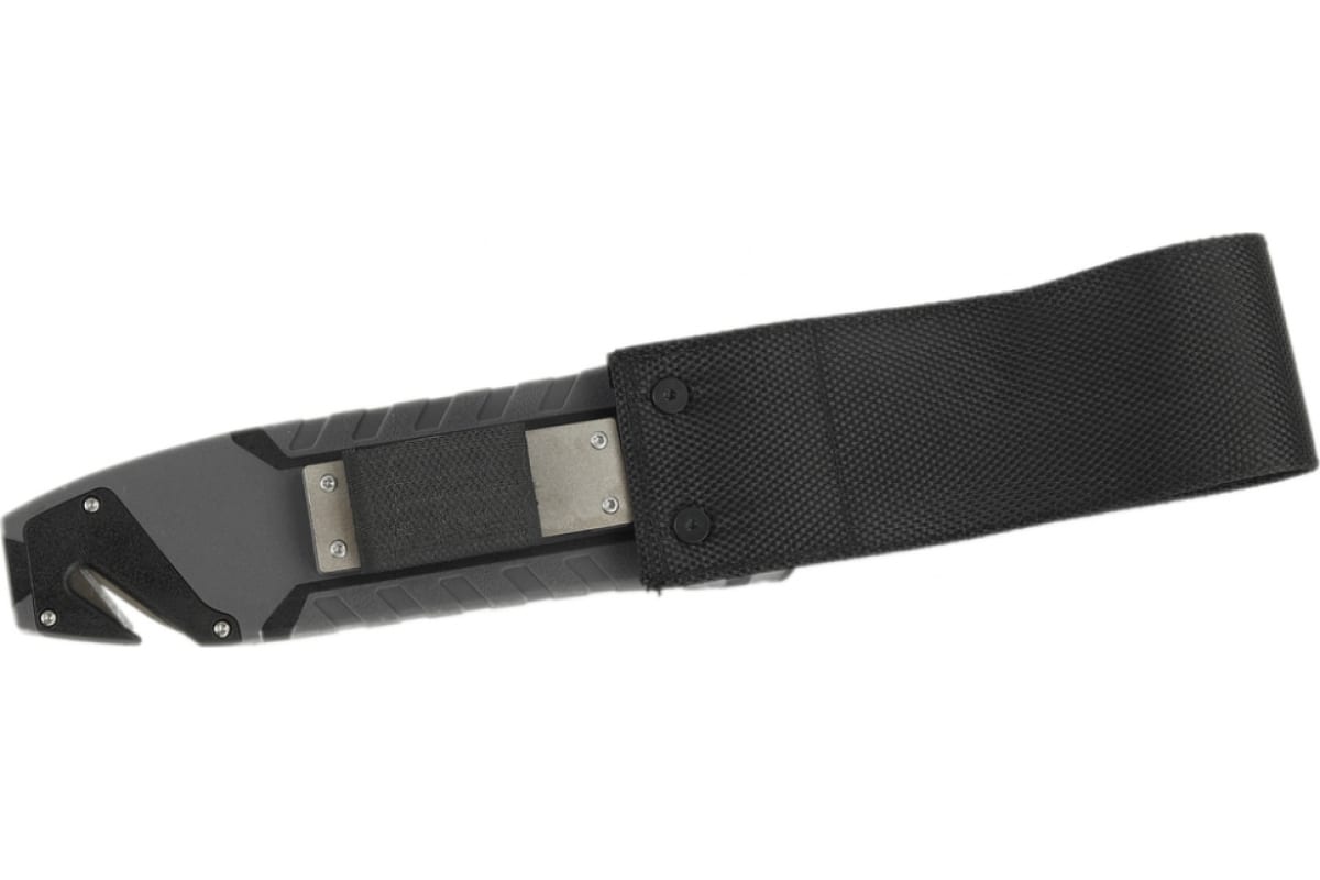 Нож идет в комплекте с фирменными ножнами, которые изготовлены из ударопрочного пластика и нейлона.