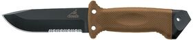 Клинок выполнен в форме Drop Point (Капля), геометрия такого клинка способствует удобству вхождения в материал, то есть удобству протыкать им что-либо. Заточка клинка Part Serrated. Рукоять ножа большая и очень удобная, изготовлена из армированного стекловолокном нейлона с резиновым покрытием.