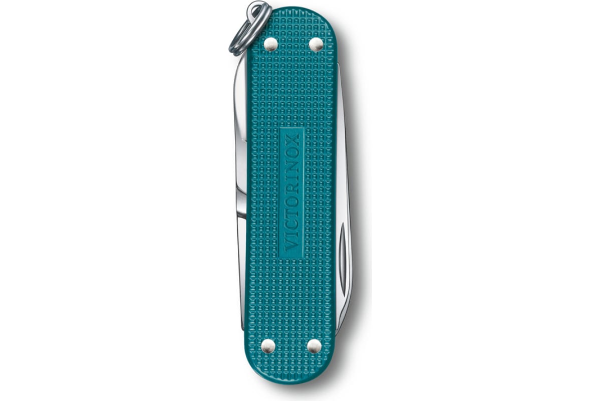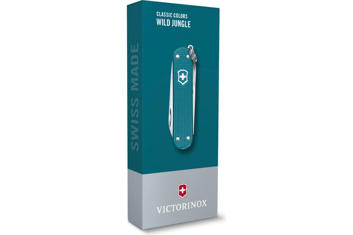 Нож-брелок Victorinox Classic SD Alox Colors Wild Jungle 58 мм, 7 функций, тёмно-бирюзовый 0.6221.242G имеет стильный дизайн.