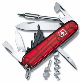 Список функций большое лезвие; малое лезвие; штопор; консервный нож с малой отверткой; открывалка для бутылок с отверткой -инструментом для снятия изоляции; шило; кернер; кольцо для ключей; пинцет; зубочистка, ушко для шитья;