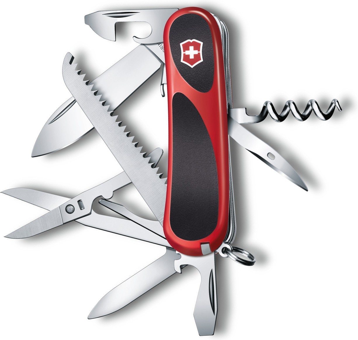 Список функций лезвие с системой блокировки; открывалка для консервных банок с отверткой 3 мм; открывалка для бутылок; плоская отвёртка с системой блокировки; приспособление для зачистки проводов; пилка для ногтей с инструментом для ухода за ногтями; шило; штопор; пила по дереву; ножницы с микроволнистой кромкой