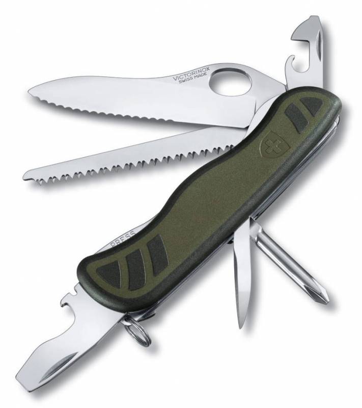 Описание Нож для спецслужб с фиксатором MILITARY - это многофункциональный инструмент с набором из 10 функций:Консервный нож с: