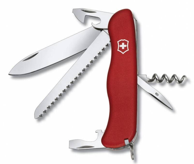 Карманный нож с фиксатором RUCKSACK – это многофункциональный инструмент с рукояткой из красного нейлона и с набором из 12 функций: Большое фиксирующееся лезвие