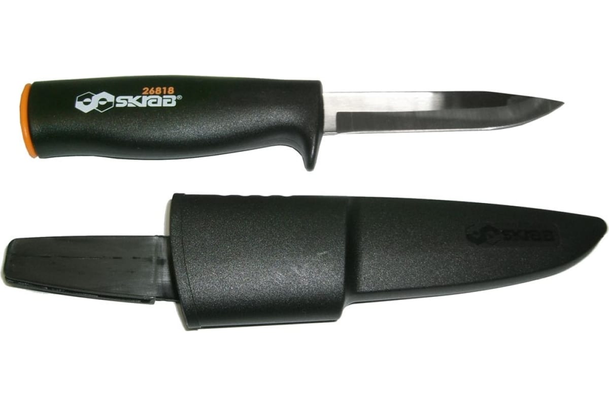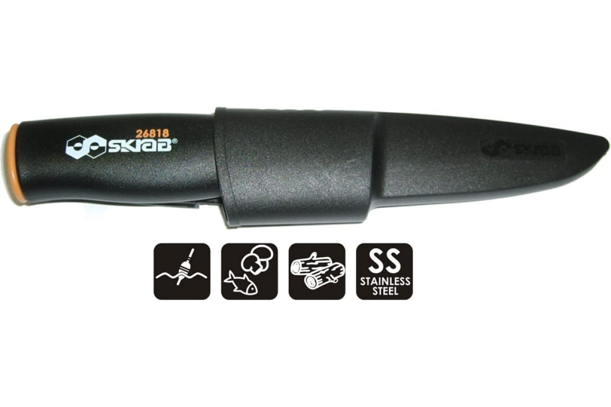 Нож с ножнами SKRAB 225 мм, плавающий SS 26818 имеет пластиковую рукоятку эргономичной формы из ударопрочного морозостойкого пластика. Оснащён упором. Не тонет в воде.