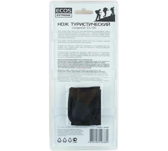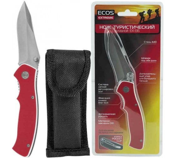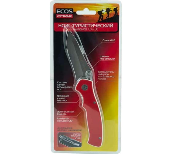 Туристический складной нож Ecos EX-136 G10 красный 325136 предназначен для выполнения повседневных задач в путешествии.