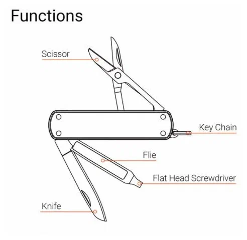 Длина ножа в сложенном состоянии всего 64.5 мм. В складном ноже скрыто 4 функции, которые помогут в повседневной жизни и при мелком ремонте: основной нож, отвертка, ножницы и пилка. Ручка имеет эргономичную форму для естественного положения в руке и надёжного хвата. Она выполнена из экологически чистого ABC пластика лёгкого веса и отличными тактильными свойствами, которые предотвращают скольжение пальцев при работе.