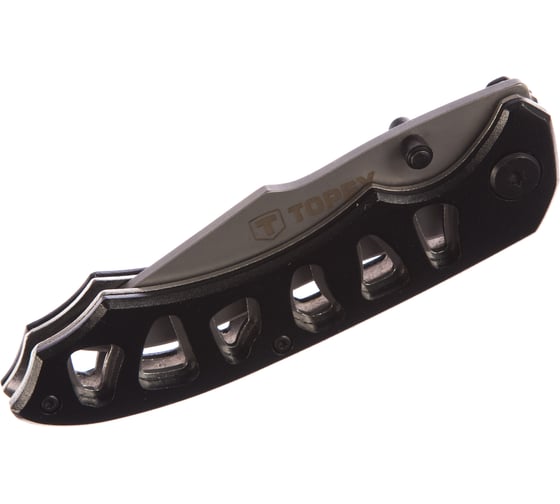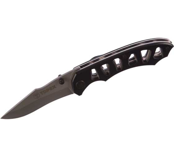 Складной нож с фиксатором TOPEX 98Z107 пригодится как в походе, так и в быту. Наличие специального курка предохраняет лезвие от складывания. Корпус ножа изготовлен из анодированного алюминия, что обеспечивает высокую прочность. Имеется клипса для крепления на ремень. Длина изделия в сложенном состоянии составляет 113 мм.