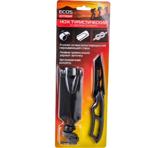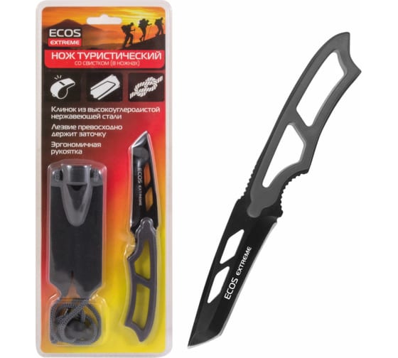 Туристический нож Ecos EX-SW-B01GR со свистком, в ножнах, серый 325125 предназначен для выполнения повседневных задач в путешествии.