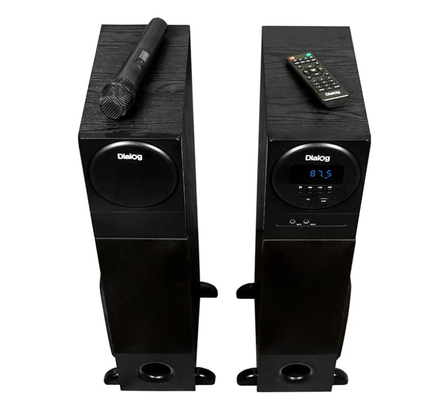 Громкоговоритель правый – 1 шт.;Громкоговоритель левый – 1 шт.;Пульт дистанционного управления (ДУ) – 1 шт.;Батарейки ААА (неперезаряжаемые) для пульта ДУ - 2 шт.; Беспроводной караоке микрофон - 1 шт.;Кабель 2xRCA-M 3.5 мм «джек» для подключения к источнику сигнала – 1 шт.; Кабель питания – 1 шт.; Пластиковые ножки - 4 шт.;Саморезы для крепления ножек к корпусу АС - 8 шт.;Резиновые амортизаторы для ножек с самоклеющейся плёнкой - 8 шт.;Руководство пользователя с гарантийным талоном – 1 шт.; Упаковка – 1 комплект