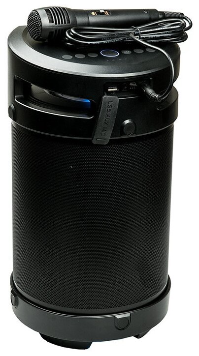 Встроенная антенна FM приёмника, четырёхсегментный светодиодный индикатор заряда батареи на верхней панели, отключаемая подсветка, возможность включения второй аналогичной системы в стерео пару