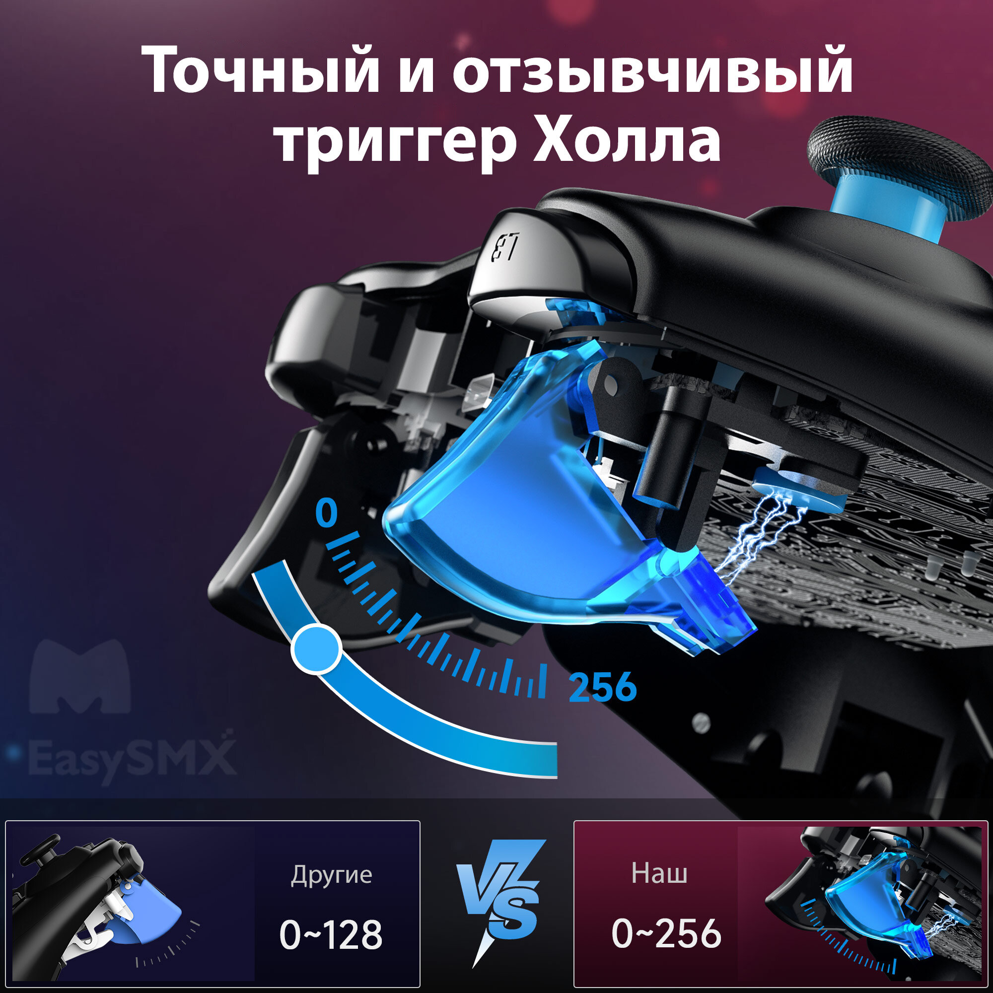 Игровой контроллер 9013Pro модернизирует линейные триггеры до триггеров Холла, поэтому в игре ваш контроль будет максимально точным, а срок службы триггера увеличен.