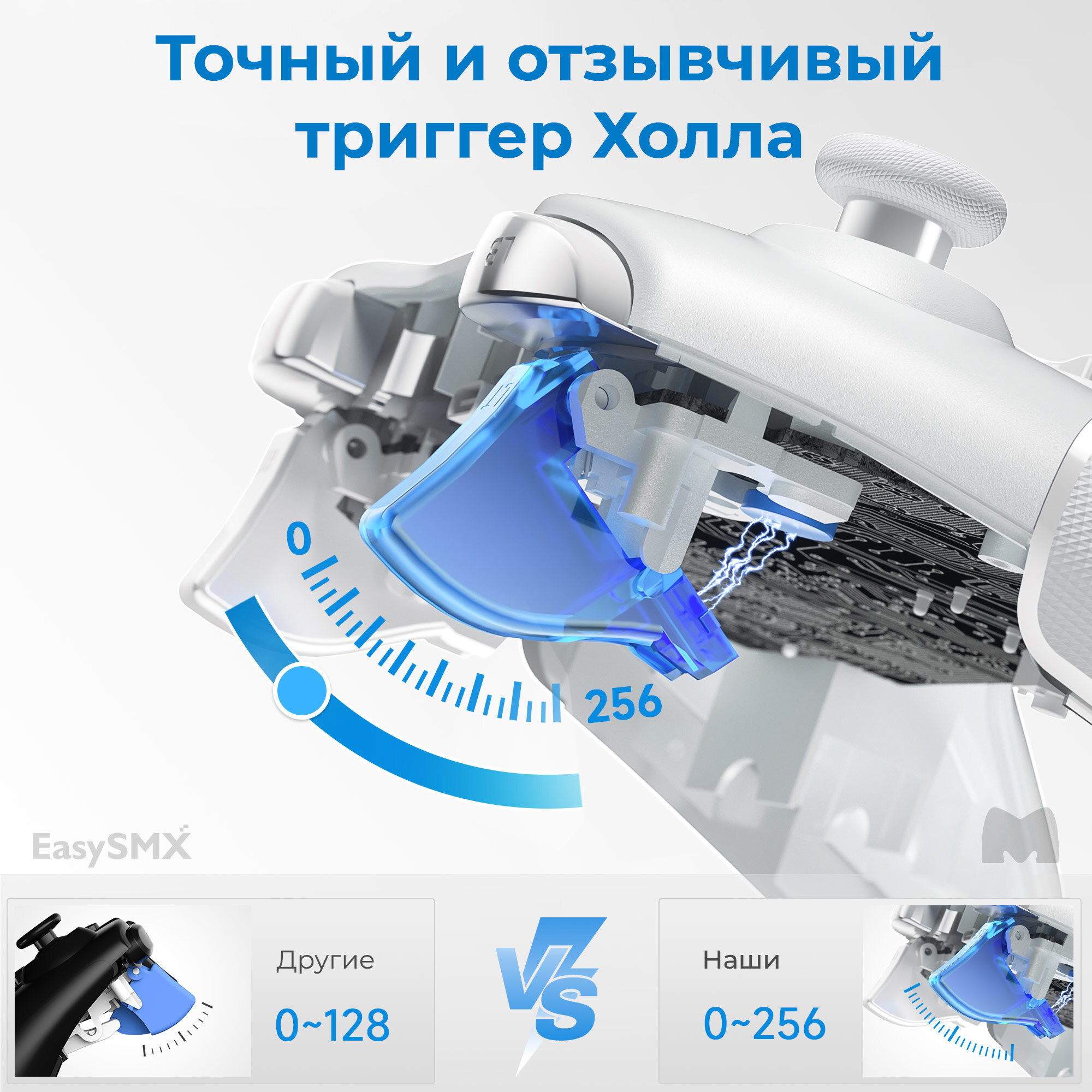 Игровой контроллер 9013Pro модернизирует линейные триггеры до триггеров Холла, поэтому в игре ваш контроль будет максимально точным, а срок службы триггера увеличен.