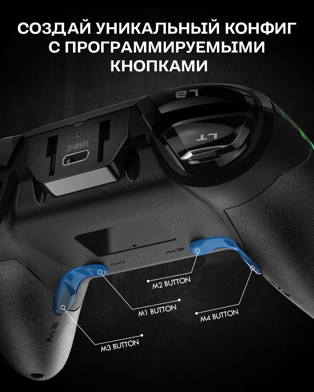 На задней стороне этого геймпада расположены 4 программируемые клавиши М1-М4, дизайн которых запатентован компанией EasySMX.