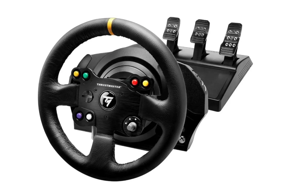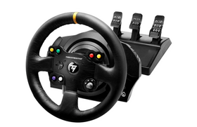 в комплекте: съемный руль TM Leather 28 GT Wheel, база TX Racing Wheel Servo Base, педальный блок T3PA; совместимость с рулями: Ferrari F1 Wheel Add-On, Ferrari GTE Wheel Add-On, с педальным блоком T3PA-PRO, с коробкой передач TH8A