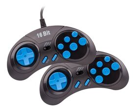 Комплектация 220 встроенных игр, в комплекте 2 проводных геймпада, адаптер питания, AV-кабель, Совместимость с играми 16бит Sega (формата. bin)