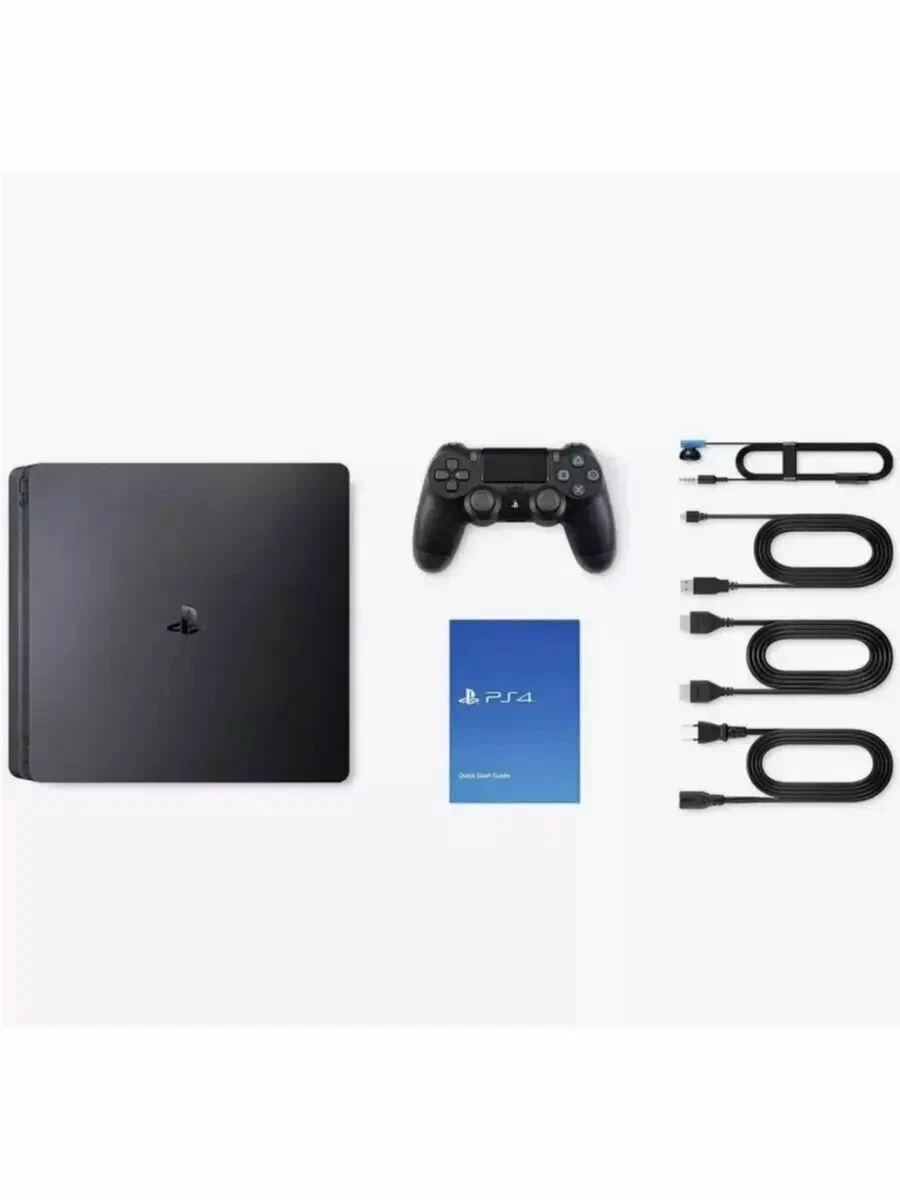 Игровая приставка Sony PlayStation 4 Slim 500 GB - 1 шт., беспроводной геймпад Dual Shock 4 - 1 шт., моногарнитура - 1 шт., кабель питания - 1 шт., HDMI-кабель - 1 шт., USB-кабель - 1 шт.