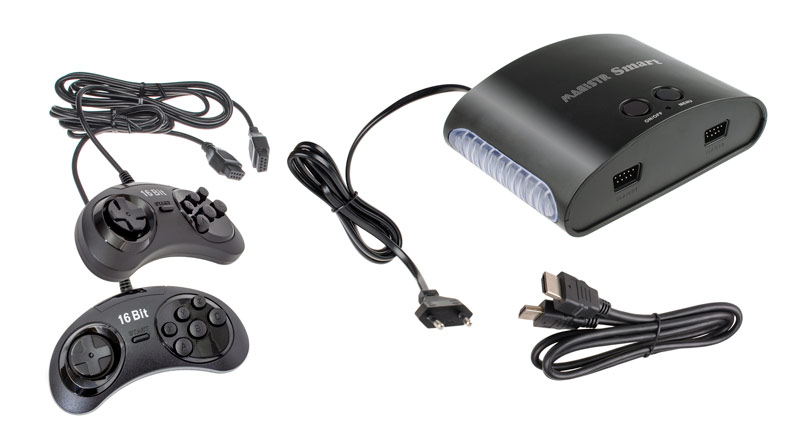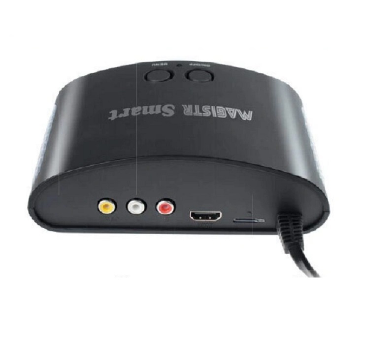 SEGA Magistr Smart (414 встроенных игр, microSD) HDMI• Включай и играй! Это просто, это быстро, это весело! Большая библиотека встроенных игр дает возможность найти интересную игру для всех возрастов.• Новый формат меню, теперь навигация стала интуитивно понятной, с подсказками на русском языке.• Совместимость со стандартными джойстиками 16-бит 9 pin, удобная эргономичная форма джойстиков для успешной игры.