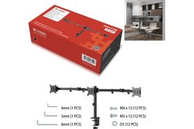 Кронштейн поставляется в оригинальной упаковке, с подробной инструкцией и широким набором креплений для настольной инсталляции (несколько вариантов закрепления на столешнице).