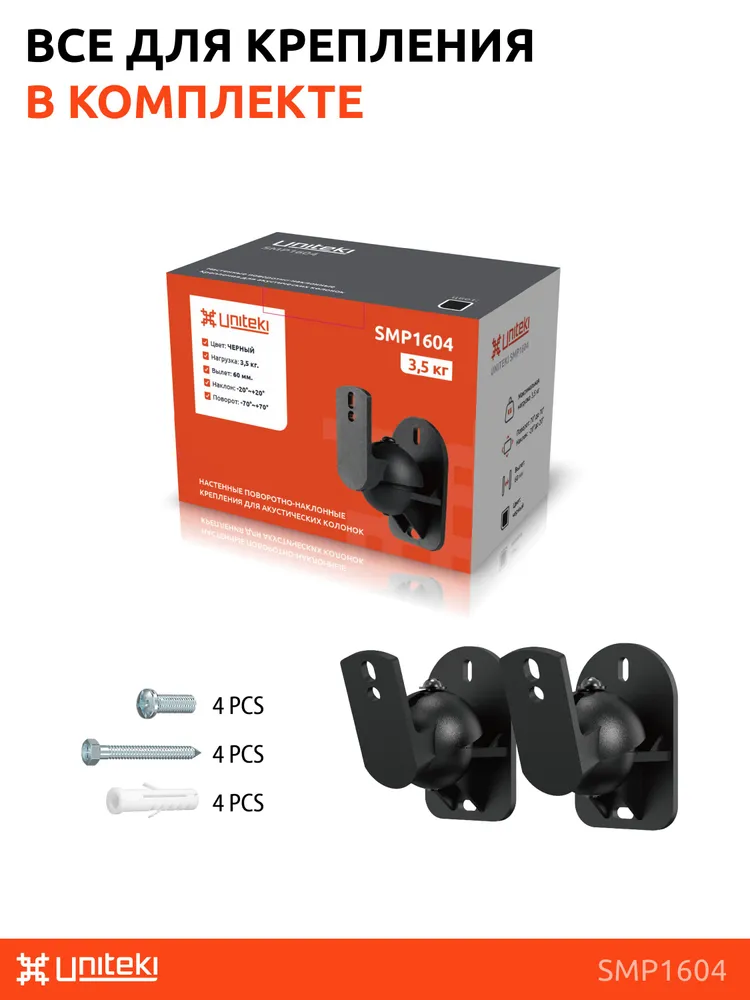 Кронштейн поставляется в оригинальной упаковке, с подробной инструкцией и широким набором креплений для настенной инсталляции.