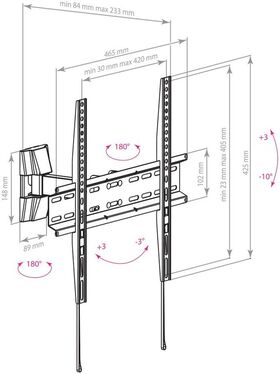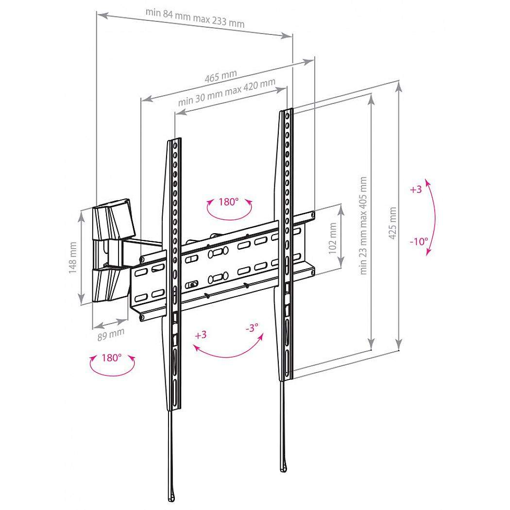 Описание Кронштейн LCD-413, для LED/LCD телевизоров 26"-55", max 35 кг, настенный, наклон +3 -10, поворот 180 градусов, от стены 84-233 мм, max VESA 400×400 мм