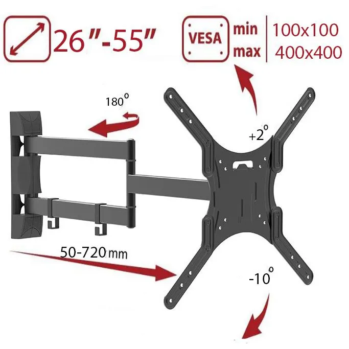 Кронштейн для телевизора поворотно-наклонный для телевизоров и мониторов с диагональю от 26 до 55 дюймов.