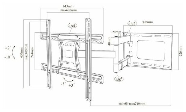 Максимальное расстояние от стены, в мм