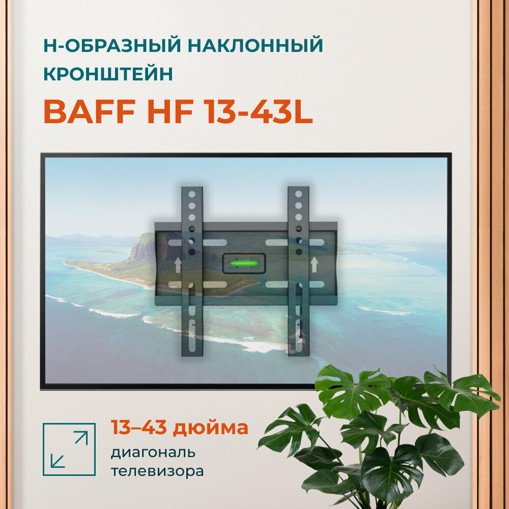 Кронштейн BAFF HF 13-43L для фиксации на стене телевизоров диагональю от 13 до 43 дюймов позволит сохранить пространство и создать стильную обстановку в комнате.