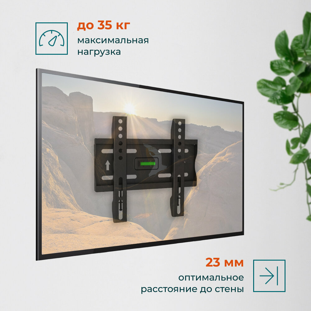 Крепление обеспечивает надежность и безопасность установки телевизора благодаря равномерному распределению нагрузки и выдерживает максимальный вес до 35 кг.