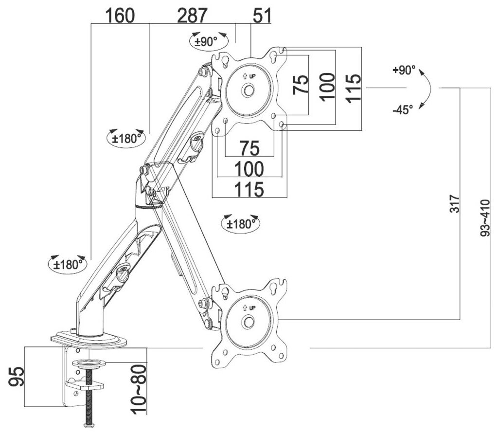 Кронштейн для монитора BAFF – это стильное и удобное решение для дома или офиса. Механизм с газовой пружиной внутри кронштейна, поворотом на 180° и углом наклона от -45° до +90° дает возможность переместить монитор на любую удобную позицию, оптимально организовать пространство на столе и освободить место для документов и офисного оборудования.