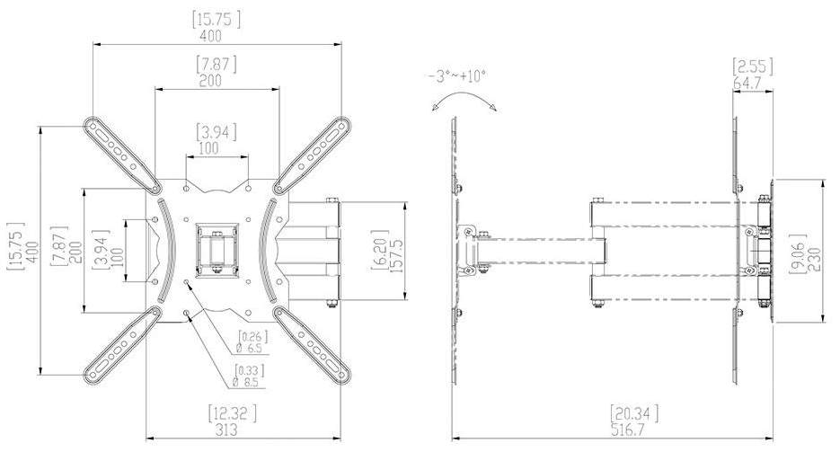 Стандарт VESA: 200x200; 200x300; 300x300; 400x400