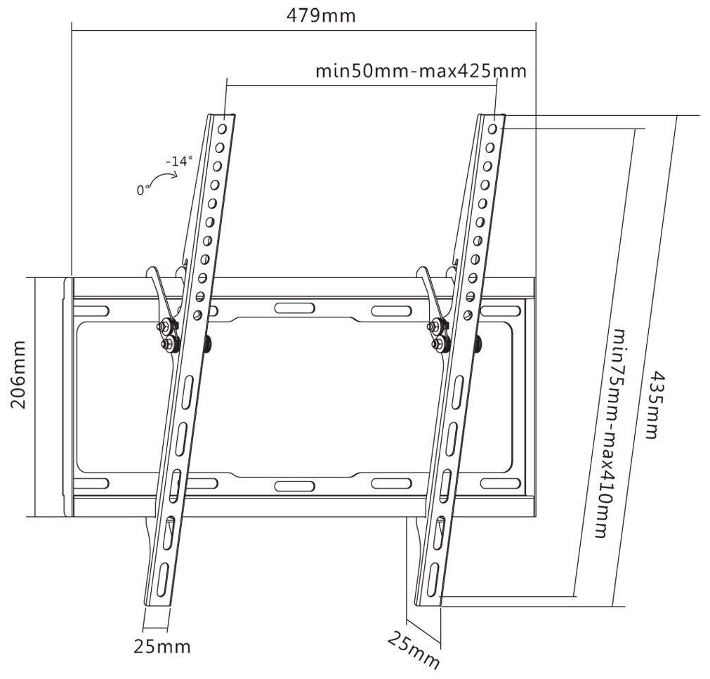 Стандарт VESA: 75x75; 100x100; 200x100; 200x200; 300x300; 400x300; 400x400