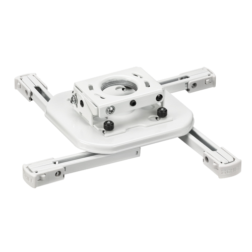 Крепление белого цвета подходит для подвеса большинства небольших видеопроекторов, весом до 11,3 кг, обладает универсальным интерфейсом и компактным дизайном со всеми теми же замечательными функциями, что и стандартная серия креплений RPA.