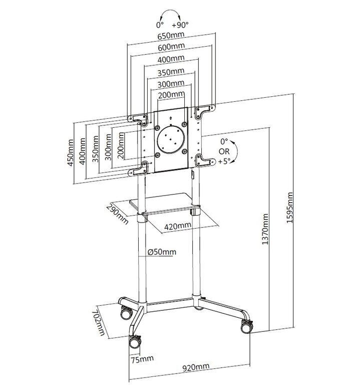 Мобильная стойка с поворотным кронштейном для ТВ и панелей 37"-70",